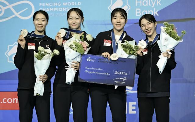 ▲ 2025 세계펜싱선수권대회에 참가해 은메달을 획득한 대한민국 사브르 대표팀 선수들이 시상식을 마치고 기념촬영을 하고 있다. |