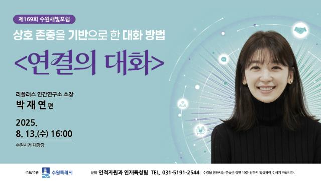 [뉴스스텝] 리플러스 인간연구소 박재연 소장이 13일 오후 4시 시청 대강당에서 열리는 제169회 수원새빛포럼 강사로 나선다.