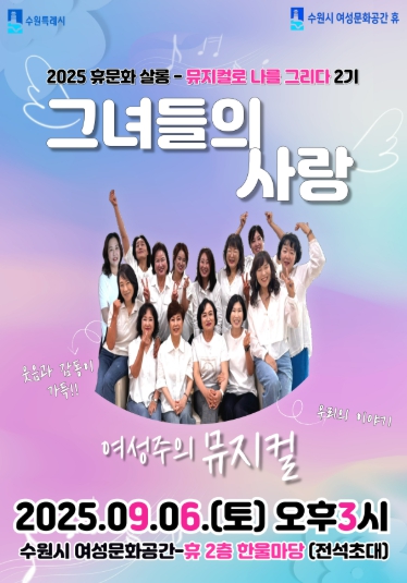 [뉴스스텝] 수원시 여성문화공간-휴(休)가 ‘뮤지컬로 나를 그리다’ 프로그램 참여자들이 출연하는 뮤지컬 ‘그녀들의 사랑’을 9월 6일 상연한다.