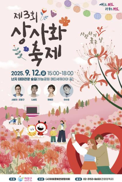 [뉴스스텝] 마포구는 9월 12일 난지 테마관광 숲길에서 ‘사랑하기 딱 좋은 날’이라는 주제로 (사)마포문화관광협의회 주관 ‘제3회 마포구 상사화 축제’를 개최한다.