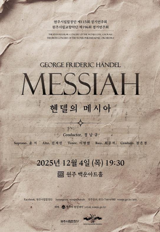 [뉴스스텝] 원주 시립합창단과 시립교향악단은 오는 12월 4일 오후 7시 30분 백운아트홀에서 정기연주회 ‘헨델의 메시아’를 개최한다.