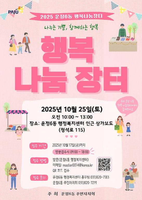 파주시, 제3회 운정6동 주민과 함께 하는 '행복나눔장터' 오는 25일 개최