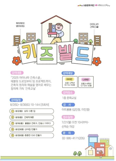9월 3일부터는 도봉아이나라도서관 2층 로비에서 결과물을 전시하는 ‘키즈빌드, 꿈을 짓다’ 전시회가 예정돼 있다.