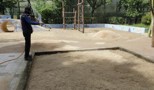 모래 소독은 전담팀을 구성해 운영되며, 인체에 무해한 친환경 오존수를 활용하여 작업을 실시한다. 이와 함께 관내 어린이공원의 모래놀이터는 연 2회 기생충 검사와 연 1회 중금속 검사도 시행하고 있다.