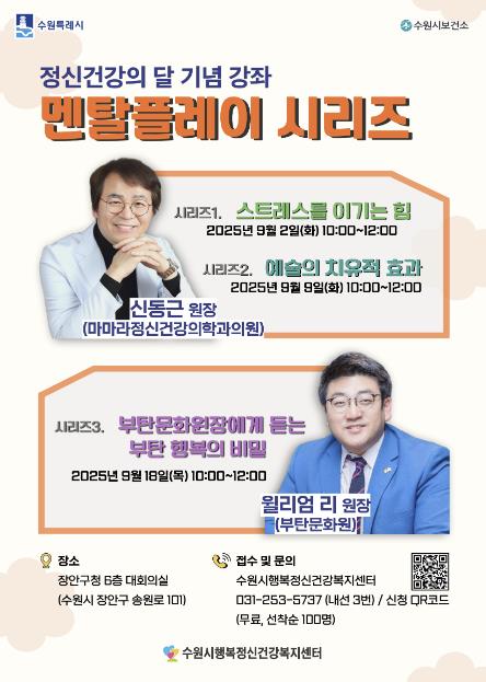 [뉴스스텝] 수원시는 정신건강에 대한 시민 관심을 높이고, 인식을 개선하기 위해 장안구청에서 ‘멘탈플레이 시리즈’ 강좌를 연다.