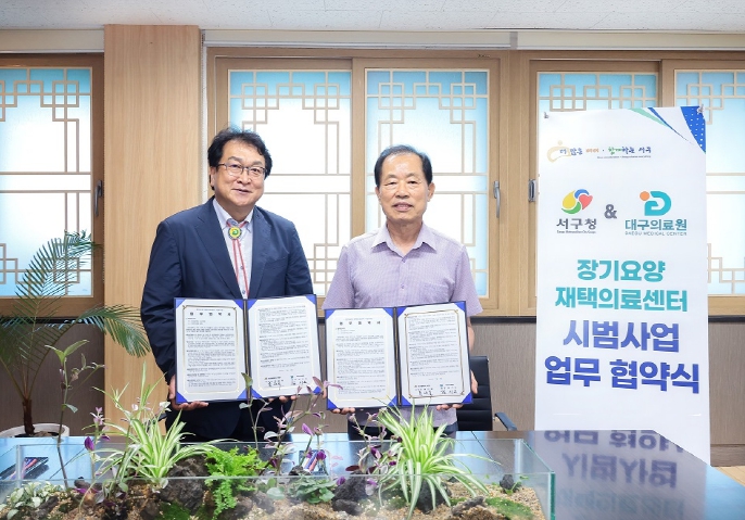 [뉴스스텝] 대구 서구는 7월 8일, 대구의료원(원장 김시오), 참좋은연합의원(원장 박계원)과 장기요양 재택의료센터 시범 사업 업무협약을 체결했다고 밝혔다.