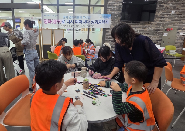 [뉴스스텝] 장안구 영화동 마을만들기협의회는 지난 14일, 영화동 행정복지센터에서 수원시다함께돌봄센터 4호점 어린이들과 함께하는 업사이클링 체험 행사를 진행했다.