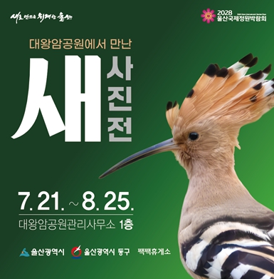 울산시와 동구청, 짹짹휴게소(조류 동호회)는 7월 21일부터 8월 25일까지 동구 대왕암공원관리사무소 1층 로비에서 조류 동호인들이 촬영한 새 사진전을 개최한다고 밝혔다.