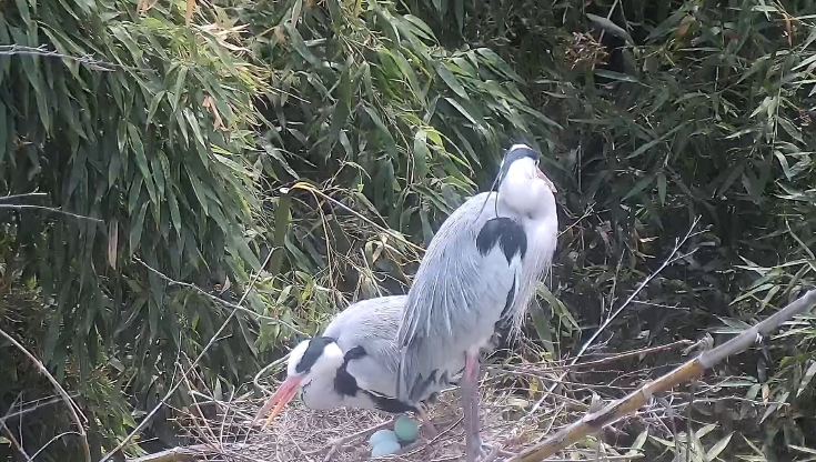 이어 지난 3월 21일에는 암컷 왜가리(머리 깃이 짧음)가 1개의 알을 낳는 장면이 포착됐으며, 27일 오후 2시 50분경 두 번째 알을 낳는 장면이 관찰됐다.