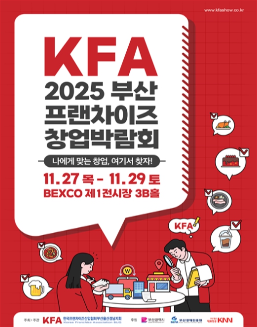 [뉴스스텝] 부산시는 27일부터 29일까지 3일간 벡스코 제1전시장에서 '케이에프에이(KFA) 프랜차이즈 창업박람회 2025 부산'이 개최된다고 밝혔다.