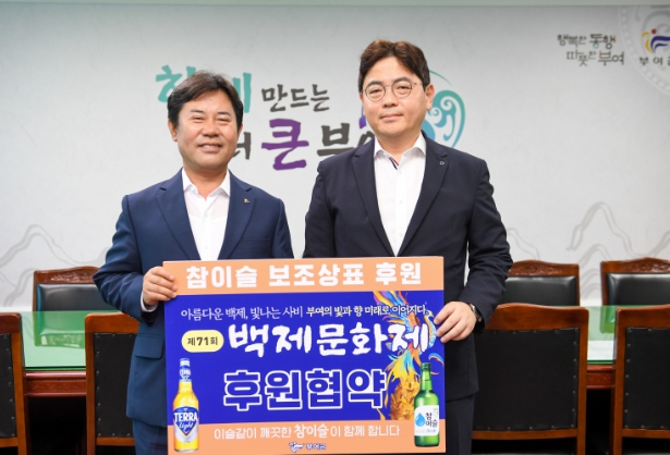 행사에 참석한 하이트진로(주) 홍봉희 특판대전지점장은 “이번 후원을 통해 백제문화제가 전국적으로 더욱 널리 알려지길 기대한다.”라며 “앞으로도 지역문화 발전과 사회적 책임을 다하는 기업으로서 역할을 충실히 하겠다.”라고 밝혔다.