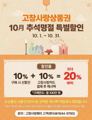 ▲ 고창사랑상품권_추석명절 20%특별할인 |