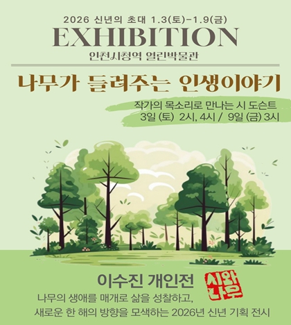 [뉴스스텝] 인천광역시 시립박물관은 1월 3일부터 9일까지 인천지하철 1호선 인천시청역 내 ‘열린박물관’에서 대관전시 ‘나무가 들려주는 인생 이야기’개인작가 전시를 개최한다고 밝혔다.