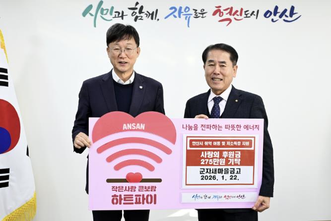 안산시, 군자새마을금고로부터 사랑의 후원금 275만 원 기탁받아