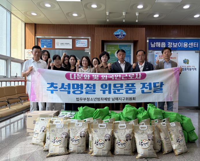 [뉴스스텝] 법무부 청소년범죄예방 남해지구위원회(회장 류근만)는 29일 추석 명절을 맞아 지역 내 다문화 가정 및 외국인근로자에게 전달해 달라며 쌀과 생필품 등을 남해군에 기탁했다.
