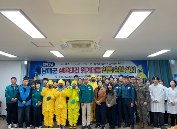 [뉴스스텝] 남해군은 지난 7일 남해군보건소 치매안심센터와 남해문화센터 인근 풋살장에서 ‘2025년 생물테러 위기대응 합동 모의훈련’을 실시했다.