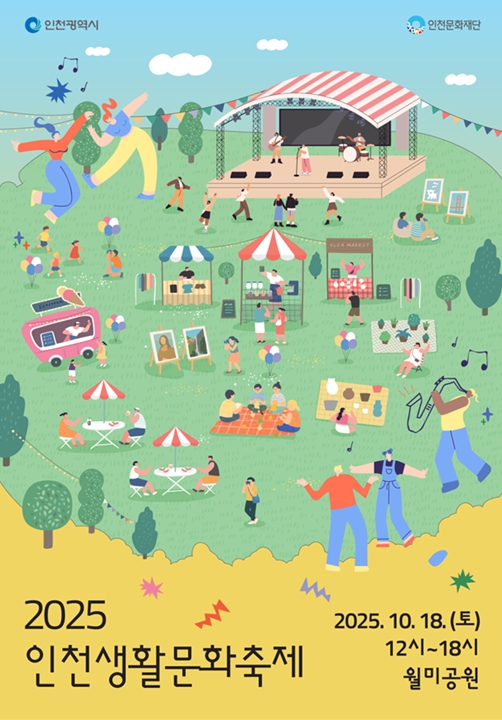 [뉴스스텝] 인천광역시와 인천문화재단이 오는 10월 18일 오후 12시부터 6시까지, 인천 중구 월미공원 일대에서 ‘2025 인천생활문화축제’를 연다.