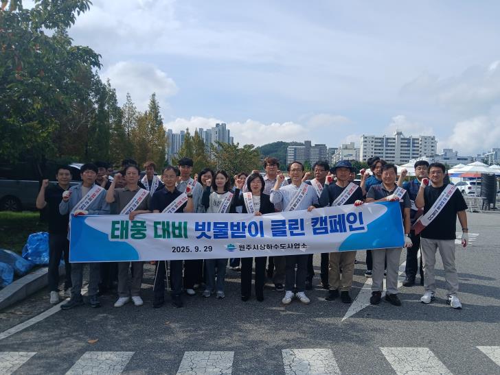 [뉴스스텝] 원주시상하수도사업소는 쾌적한 도시환경 조성과 건강한 수생태계 보전을 위해 지난 29일 소장을 비롯한 직원 60여 명과 함께 태풍 대비 ‘빗물받이 클린’ 캠페인을 전개하고, 환경부에 하수 중점관리지역 지정을 신청했다.