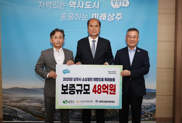 협약식에는 강영석 상주시장, 김중권 경북신용보증재단 이사장, 홍성천 KB국민은행 상주지점장이 참석했다.