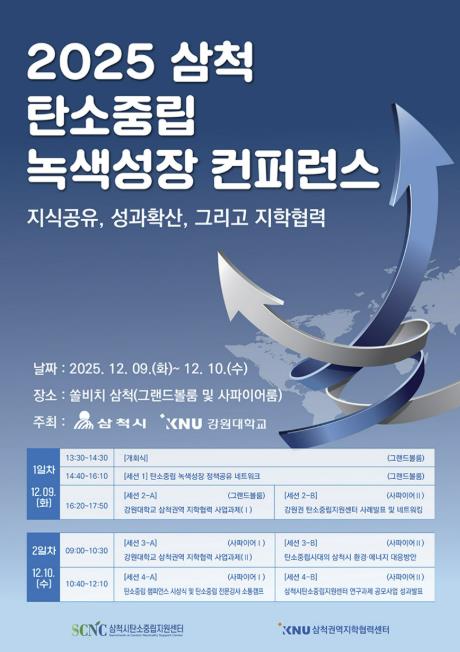[뉴스스텝] 삼척시와 강원대학교가 공동 주최하는 ‘2025 삼척 탄소중립 녹색성장 컨퍼런스’가 오는 12월 9일부터 10일까지 이틀간 쏠비치 삼척에서 개최된다.