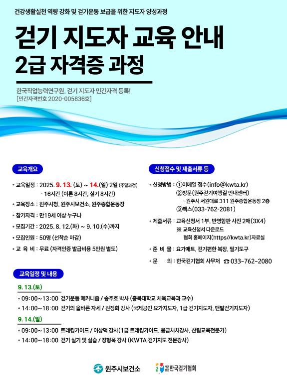 | ▲ 하반기 걷기지도자 2급 과정 모집 안내문 |