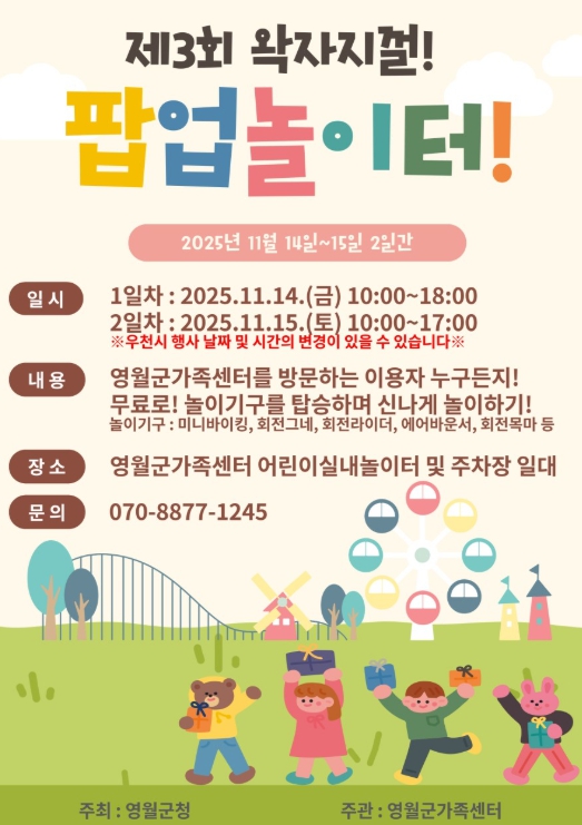 [뉴스스텝] 영월군 가족센터는 오는 11월 14, 15일 ‘제3회 왁자지껄 팝업놀이터’를 운영한다.