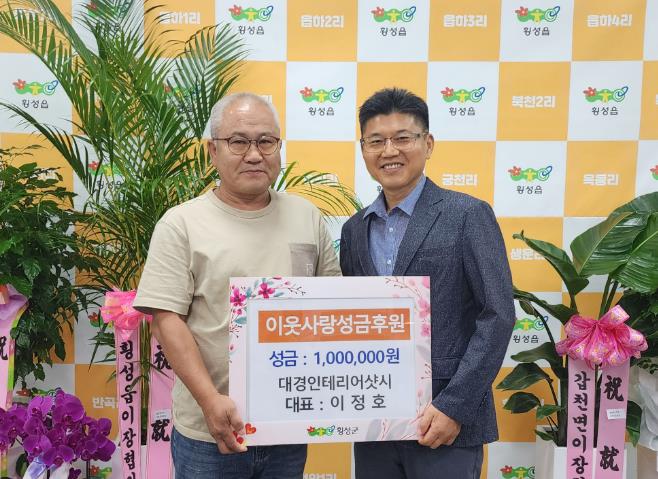 ▲ 횡성군 대경인테리어샷시 이정호 대표, 횡성읍 저소득 이웃사랑후원금 100만원 지정기탁 |
