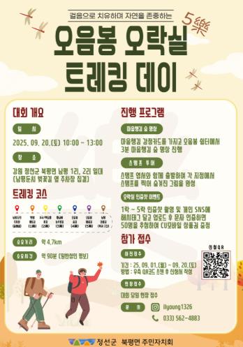 20일 북평면 오전 10시부터 남평리 일원에서 ‘2025 오음봉 오락(5樂)실 트레킹 데이’가 진행된다.