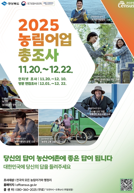 [뉴스스텝] 경상북도는 11월 20일부터 12월 22일까지 도내 모든 농가·임가·어가와 읍면지역의 행정리를 대상*으로 ‘2025년 농림어업총조사’를 실시한다.