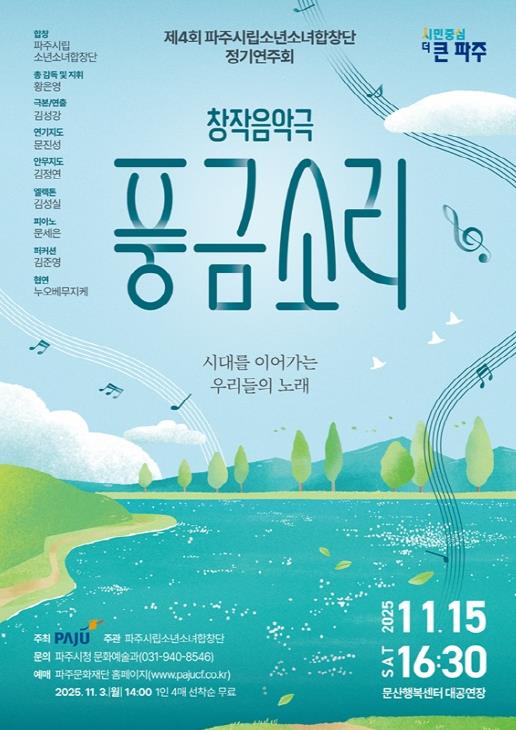 유초자 문화예술과장은 “오래된 풍금에서 흘러나오는 노래처럼 이번 공연이 시민들의 마음속에 따뜻한 울림이 되기를 바란다”라며, “소년소녀합창단원들이 정성과 열정을 다해 준비한 공연인 만큼, 많은 관심과 응원을 부탁드린다”라고 전했다.