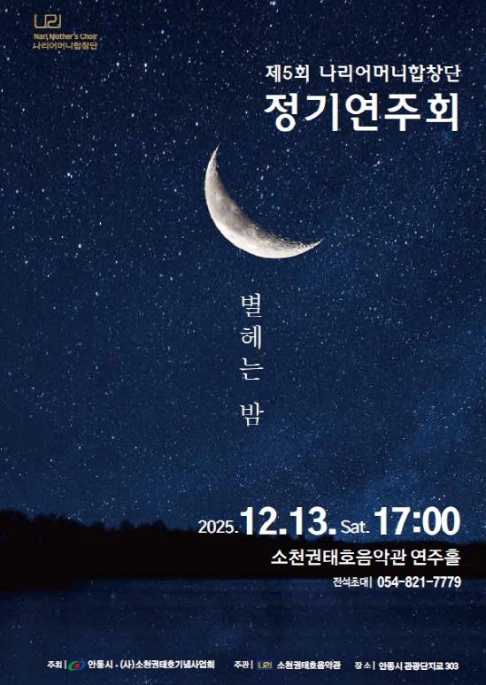 소천권태호음악관 관계자는 “나리어머니합창단은 지역과 함께 성장해 온 소중한 문화 동반자”라며 “이번 연주회가 올 한 해를 따뜻하게 마무리할 수 있는 특별한 시간이 되길 바란다”고 전했다.