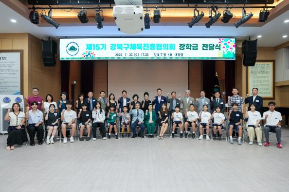 [뉴스스텝] 서울 강북구는 강북구 체육진흥협의회가 지난 23일 강북구청 대강당에서 ‘제15기 강북구 체육진흥협의회 엘리트 학생선수 장학금 전달식’을 개최하고, 지역 체육 유망주 15명에게 총 2,250만원의 장학금을 전달했다고 밝혔다.