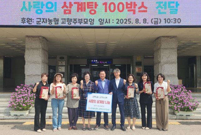 김영식 복지국장은 “매년 꾸준한 봉사와 나눔을 실천해 주시는 군자농협 고향주부모임에 깊이 감사드린다”며 “기탁해 주신 삼계탕은 어려운 이웃들에게 소중히 전달해 무더위를 이겨내는 데 큰 힘이 될 것”이라고 말했다.