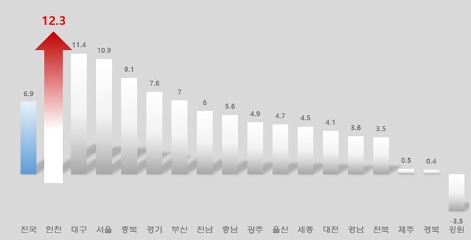 통계청이 7월에 발표한 인구동향에 따르면, 올해 1월부터 5월까지 인천시의 출생아 수는 총 6,868명으로 전년 동기 대비 1,278명이 증가해 12.3%의 높은 성장률을 기록했다. 이는 전국 평균 6.9%를 크게 상회하는 수치이며, 충북(11.4%)과 대구(10.9%)가 그 뒤를 이었다.