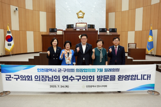 [뉴스스텝] 연수구의회는 지난 24일 의장실에서 인천광역시 군·구의회 의장협의회 7월 월례회의를 개최했다.