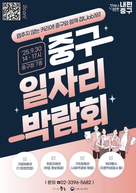 [뉴스스텝] 서울 중구가 오는 30일 오후 2시부터 5시까지 중구청 7층 대강당에서 '2025 중구 일자리박람회'를 개최한다.