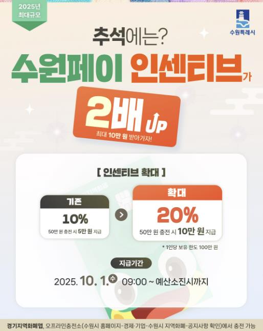 [뉴스스텝] 수원시가 추석 명절을 맞아 10월 수원페이 인센티브를 20%로 확대한다.