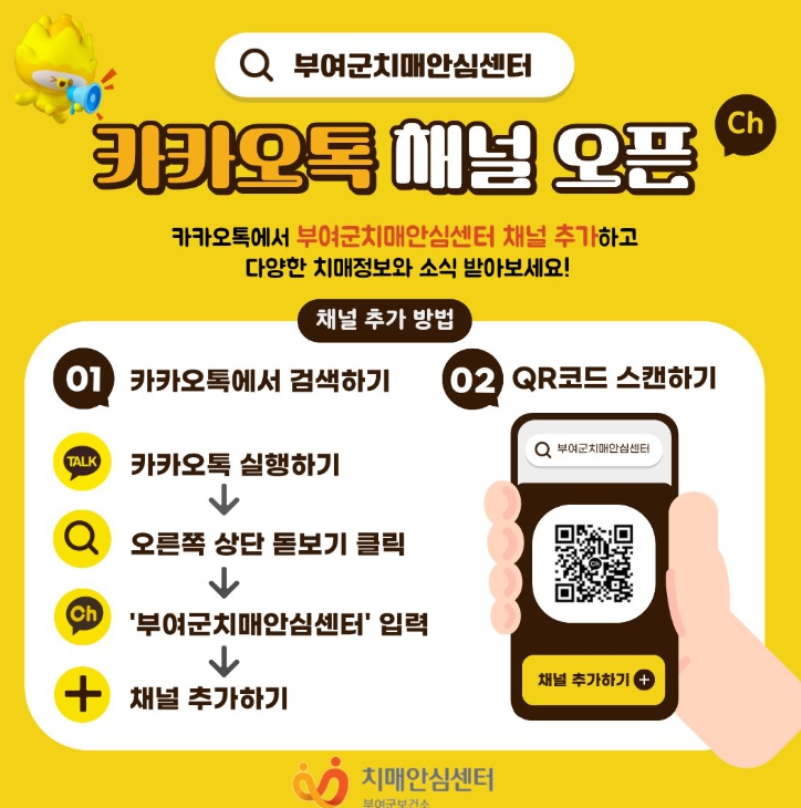 관련 문의는 새롭게 개설된 카카오톡 채널 또는 부여군보건소 치매관리팀을 통해 가능하다.
