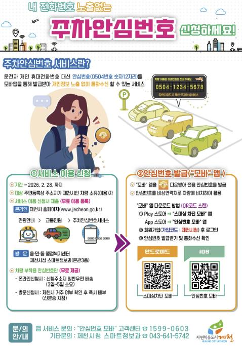 [뉴스스텝] 제천시가 시민들의 개인정보 보호를 위해 도입한 ‘주차안심번호 서비스’가 이용자 3천 명을 돌파하며 생활 속 보안 서비스로 자리 잡고 있다.