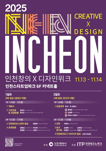 [뉴스스텝] 인천광역시는 오는 11월 13일부터 14일까지 이틀간 인천스타트업파크 커넥트홀에서 '2025 인천창의X디자인위크'를 개최한다고 밝혔다.