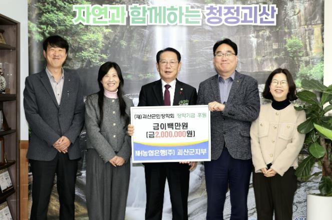 [뉴스스텝] 충북 괴산군 NH농협은행(주) 괴산군지부는 지난 18일 지역의 우수 인재 양성을 위해 써달라며 (재)괴산군민장학회에 장학기금 200만 원을 기탁했다.