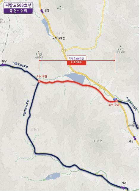옥현~수리 도로개량공사는 2021년 충청북도 도로건설관리계획에 지방도508호선 승격과 함께 사업계획이 반영된 노선이다.
