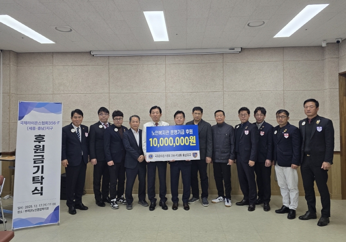 부여군노인종합복지관 원종찬 관장은 “지역 어르신들을 위해 따뜻한 나눔을 실천해 주신 국제라이온스협회 356-F (세종·충남)지구에 깊이 감사드린다.”라며, “후원금은 어르신 복지 향상을 위해 소중하게 사용하겠다.”라고 전했다.