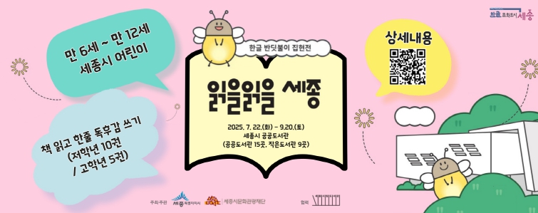 이번 캠페인은 한글문화도시 사업 ’한글 반딧불이 집현전‘의 일환으로, 세종시립도서관을 포함한 공공도서관 24곳과 지역 인증 서점이 함께 참여한다. 어린이들이 책을 통해 감각과 상상력을 일깨우고, 생활 속에서 문화적 감수성을 일깨우기 위해 기획된 프로그램이다.