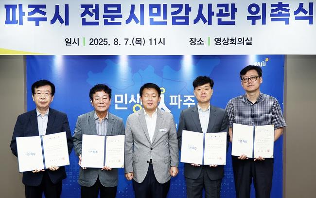 [뉴스스텝] 파주시는 지난 7일 시청 영상회의실에서 파주시 전문시민감사관 위촉식을 열고 다양한 분야에서 전문성을 갖춘 시민 4명에게 위촉장을 수여했다.