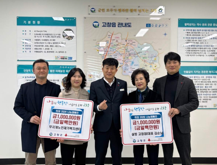 박병섭 고창읍장은 “나눔에 동참해 주신 기관과 기업에 깊이 감사드리며, 소중한 성금이 꼭 필요한 이웃들에게 전달될 수 있도록 최선을 다하겠다”고 밝혔다.