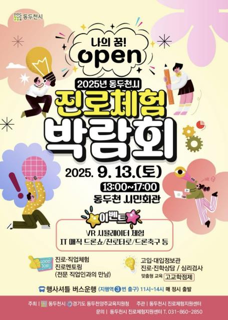 [뉴스스텝] 동두천시는 오는 9월 13일 오후 1시부터 5시까지 동두천시민회관에서 『나의 꿈! OPEN 2025 청소년 진로체험박람회』를 개최한다.