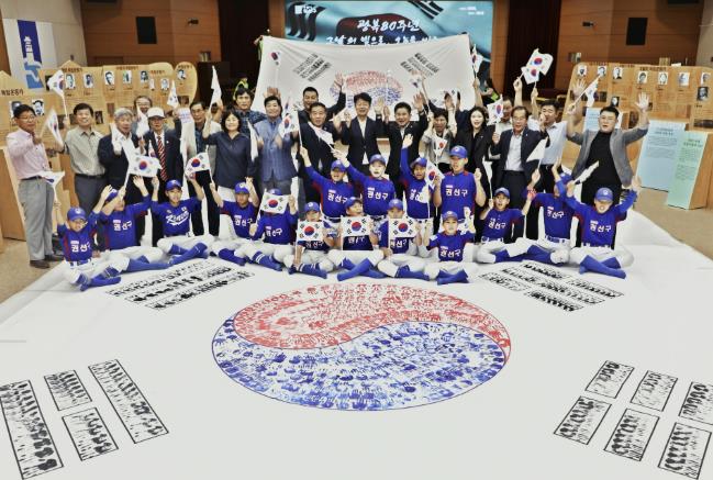 참석자들은 광복의 역사와 의미를 담은 영상을 시청한 후, 대형 태극기에 손도장을 찍으며 나라사랑의 마음을 표현했다. 행사 마지막에는 모두가 ‘대한민국 만세!’를 외치며 광복의 기쁨과 숭고한 정신을 되새겼다.