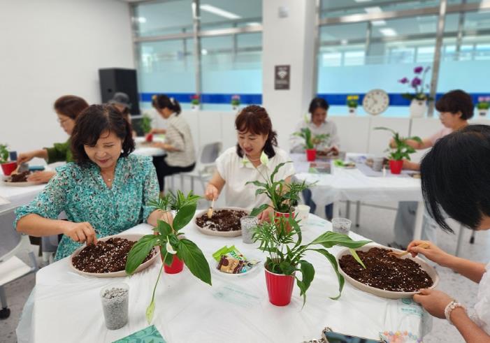1회차는 캘리그래피 지도사 정은경 강사가 ‘힐링멋글씨’를 주제로 나만의 붓글씨를 담은 한지무드등 만들기, 2회차는 자연품애 힐링원예 대표 이은숙 강사가 ‘공기정화식물 한뼘정원’을 주제로 원예테라피 수업을 진행했다.