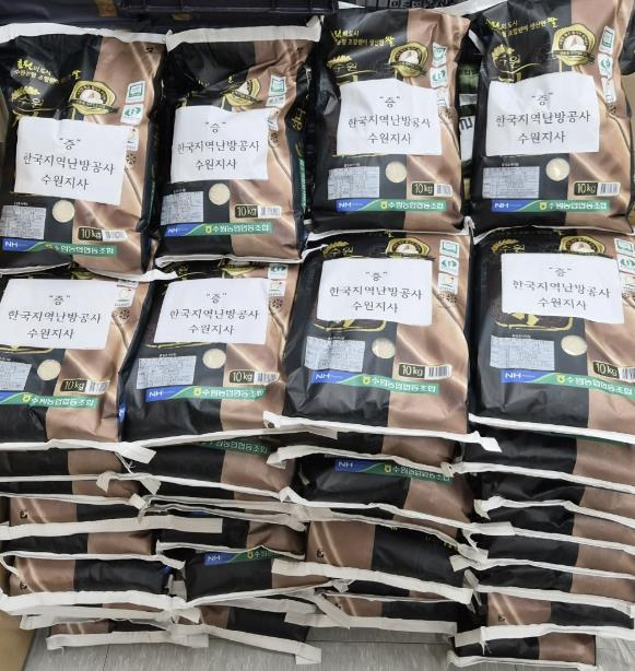 | ▲ 한국지역난방공사 수원지사, 수원시 영통구 광교1동 경로당에 쌀 42포 기부... 따뜻한 나눔 실천 |